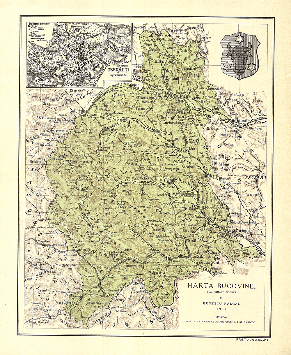 Hartă a Bucovinei de Eusebiu Pașcan, 1914 (după Eduard Fisher), MNIR