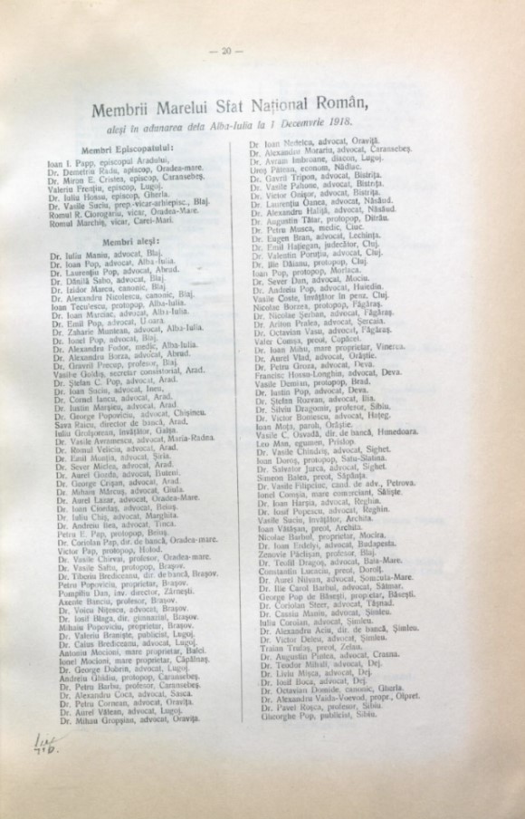 Through the credentials, local representatives were delegated from each locality. “As rightful delegates are hereby authorized to take part in a decisive vote at the Romanian National Assembly which will be convened by the Romanian National Central Council on behalf of all the Romanians in this electoral circle and to other Romanian Grand National Assemblies which may eventually be convened during this year or the following year and contribute with their vote to the decision on the future fate of the Romanian people in Transylvania, Hungary and Banatul Timişan. “(Testimonies 1918 La The Completion of the National-State Unity of the Romanian People, vol. VIII, Bucharest, vol. VIII, doc. 86, p. 70, Credential, 12/25 November 1918 Tinca (electoral circle).